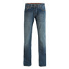 Die modische und schmale Herrenjeans von Kuyichi. Schmale Low Boot Jeans mit geradem Beinschnitt. Gefertigt ist die Jeans aus 16/23 Rusty Denim in dunkler Waschung mit markant starkem Abrieb und aufwändig, von Hand gearbeiteten Used-Effekten.