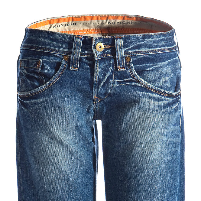Kuyichi Jeans Sugar, das Spitzenjeansmodell in verschiedenen Waschungen. Die Jeans sitzt lässig auf der Hüfte und ist mit breitem, geraden Beinschnitt. Tiefgesetzte, große Taschen sorgen für einen knackigen Hintern
